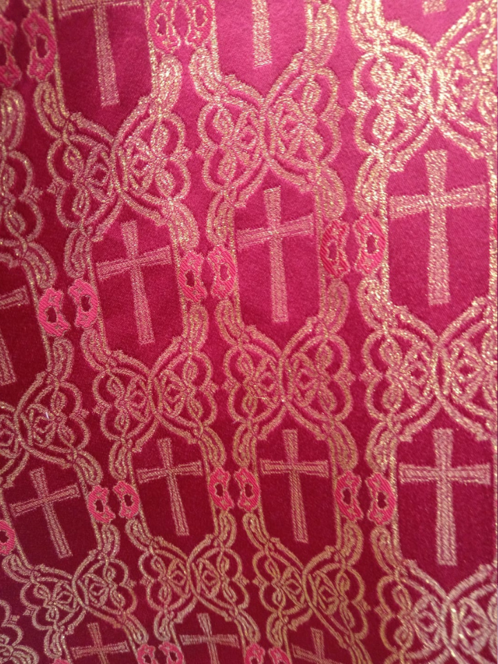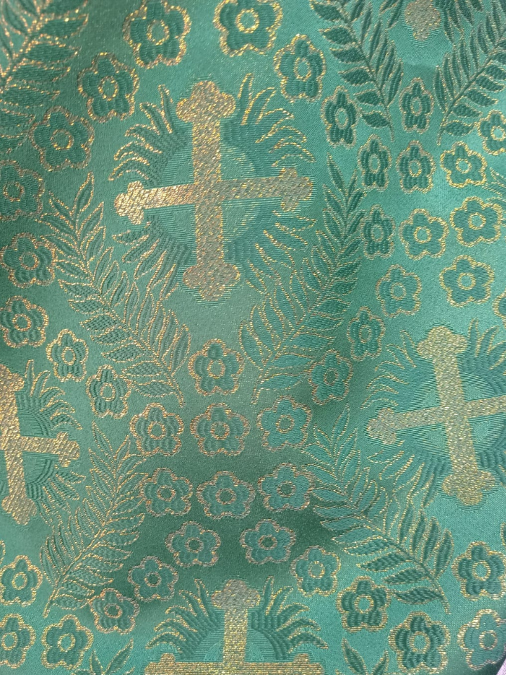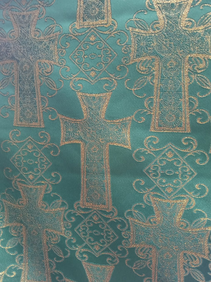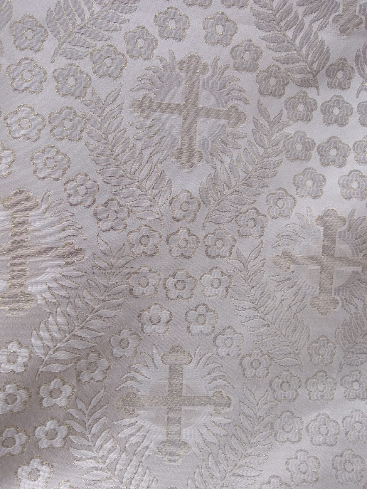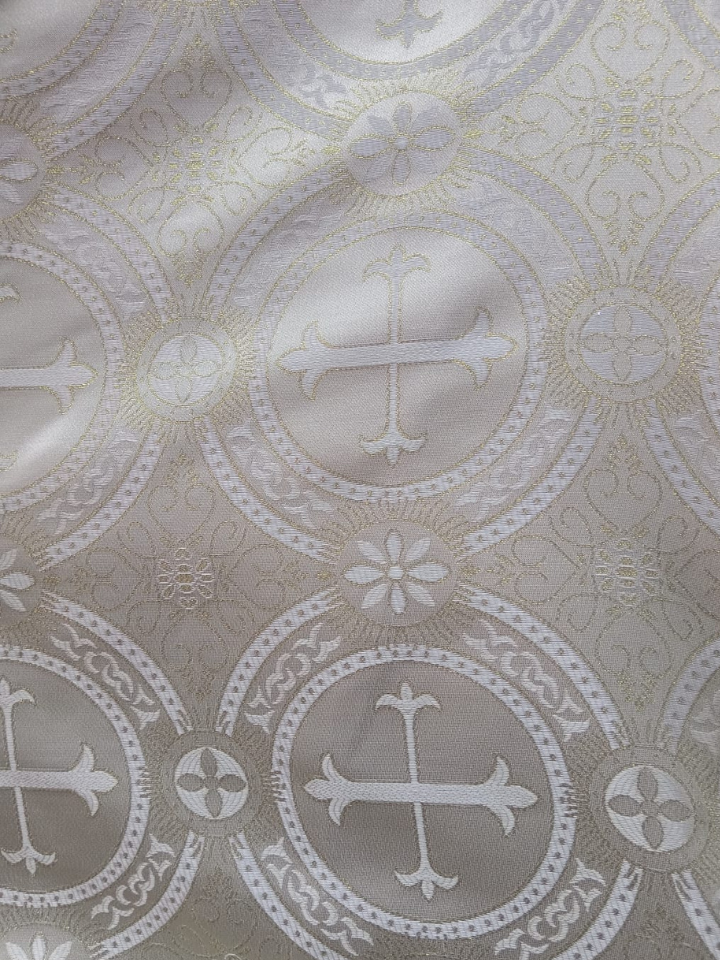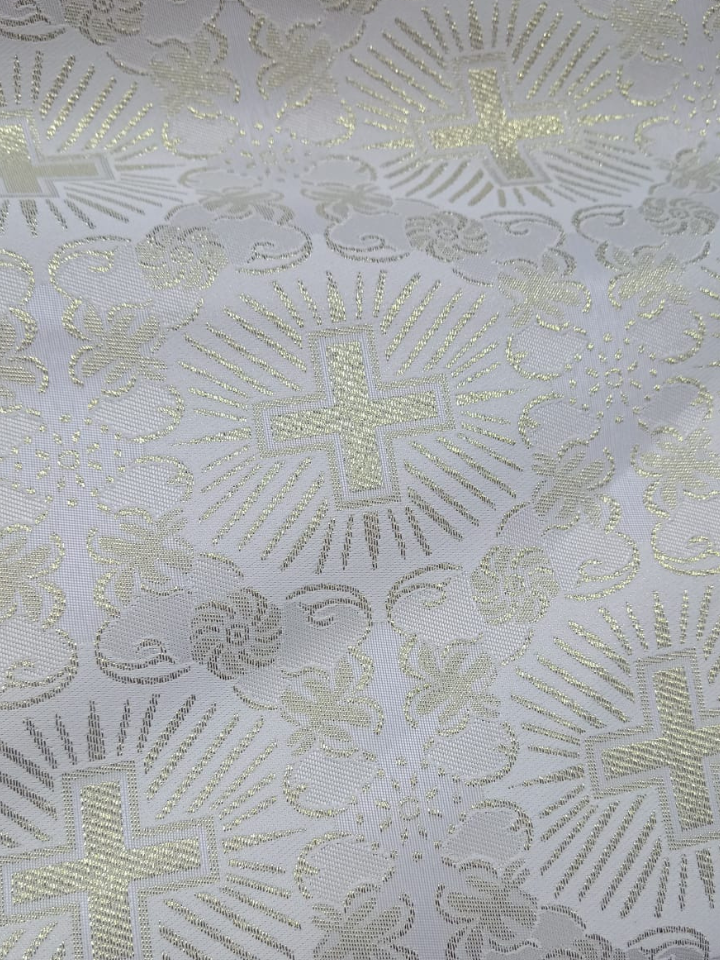 Tela litúrgica 100% poliéster de 1.50 m de ancho, elegante, resistente y perfecta para ornamentos y decoración religiosa.